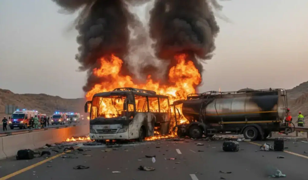 • 45 người t:ử vo:ng khi xe buýt tông vào xe chở dầu rồi bốc cháy