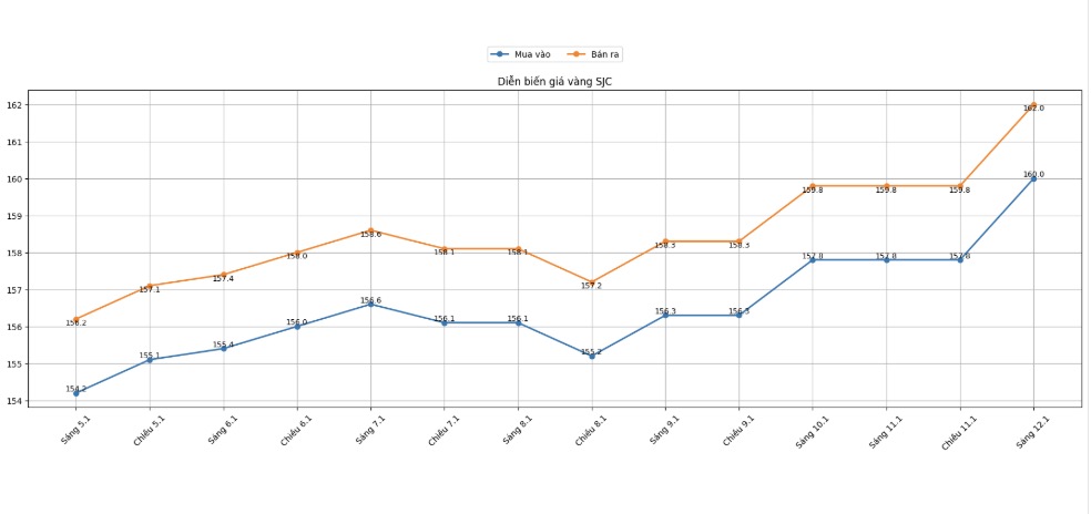 Giá vàng hôm nay 12.1: Đồng loạt tăng. Vàng miếng SJC tăng 2,2 triệu đồng/lượng, trong khi vàng nhẫn trơn tăng từ 1,5 đến 2 triệu đồng/lượng.