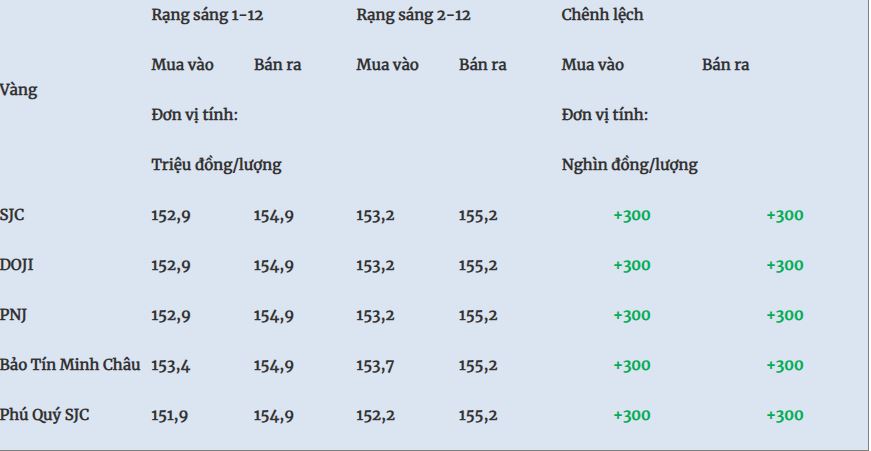 Giá vàng miếng trong nước cập nhật sáng 2-12 như sau: