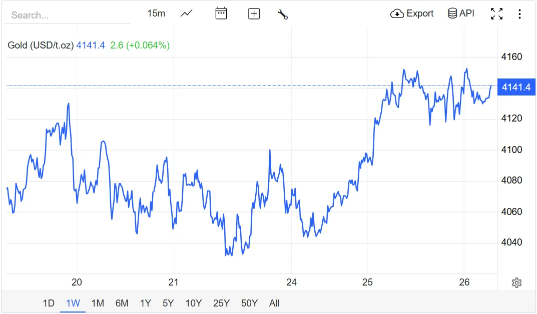 Theo Kitco News, thị trường vàng đang chứng kiến đà tăng mới khi giá vàng tăng trở lại trên 4.100 USD/ounce khi thị trường một lần nữa bắt đầu định giá khả năng Cục Dự trữ Liên bang Mỹ (Fed) cắt giảm lãi suất vào tháng tới.