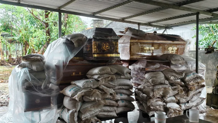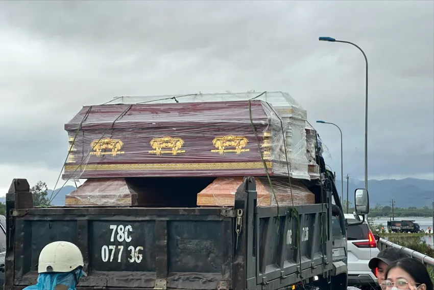 Sau lũ lịch sử, nhiều xe chở quan tài đến xã Hòa Thịnh (Phú Yên cũ) để hỗ trợ những người dân gặp nạn. Số lượng quan tài đang dư so với thực tế số người mất nên địa phương đang cho gửi ở hai ngôi chùa.