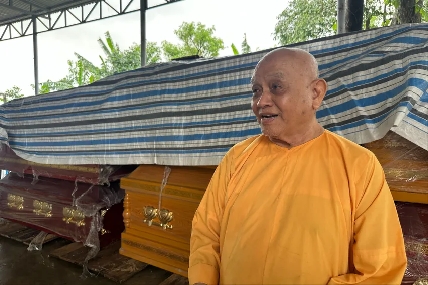 “Bây giờ người chết lo hậu sự gần như đã xong. Nhà chùa tính gửi lại cho các điểm cung cấp quan tài từ thiện” – theo đại đức Thích Giác Trí.